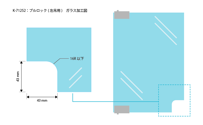 ブル蝶番を使用してガラス扉を設置する際に取付るロックです。