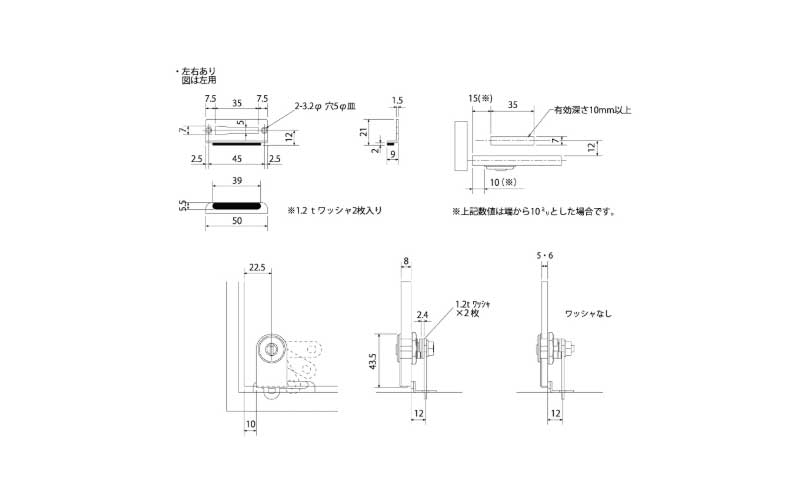 戸当たりがない場合に必要となる、戸当たり受座金具です。